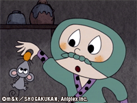 ぜんまいざむらいのぜんまいと同じ形をしたチョンマゲが特徴の泥棒。ピーナッツが大好物。